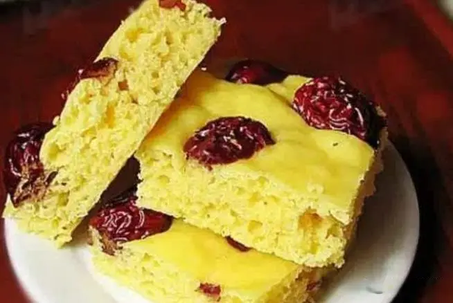 粘玉米蒸糕是大庆的传统糕点,用玉米面、芝麻、豆沙、蜜枣等原料制作而成,口感松软,甜香浓郁,是一谈健康适口的甜品。