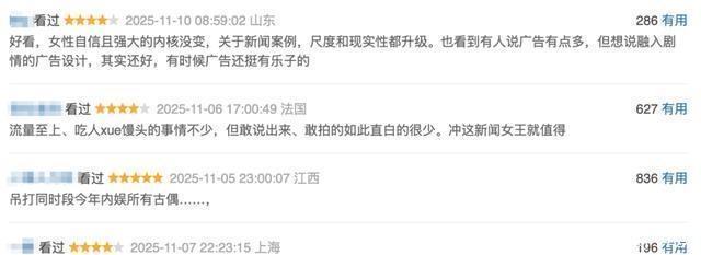 这部剧关于各个出场东说念主物的描摹也荒谬精确,并非空中楼阁。据称这是因为剧方团队作念了浩荡采风使命。从传统媒体的裁剪、记者、总编、导播,以至考虑专科学生,他们齐进行了潜入走访。他们谛视挖掘从业者的内心寰宇:“为什么要当记者?为什么聘请这个角度报说念?”