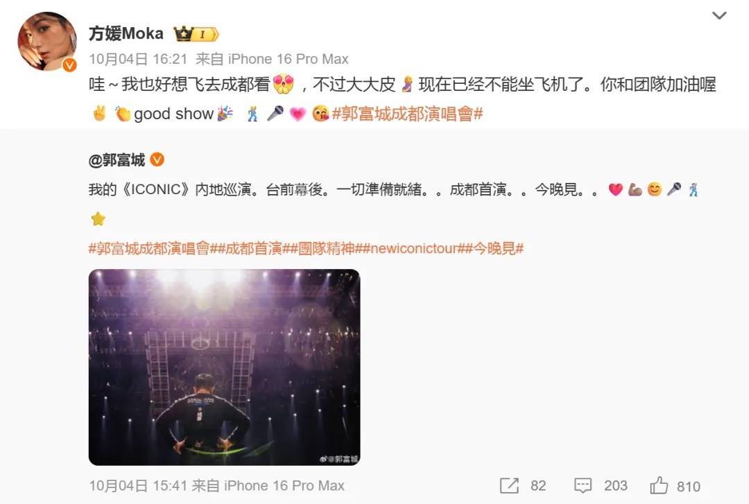 郭富城发文称:“亲爱的妻子@方媛Moka时光为证,爱如初见。成家八周年中意”,随后,方媛转发该本色并暗示:“亲爱的老公@郭富城八年不是把爱过成民风,而是把民风过成新的心动~成家八周年中意!”
