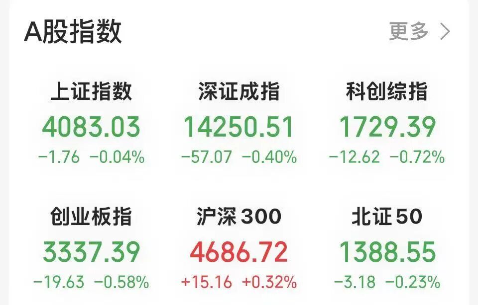 本日早盘,A股市集延续震憾态势,保障、券商等大金融板块全体升温,带动沪指相对强势。法规午间休市,上证指数报4083.03点,跌0.04%;深证成指跌0.40%,创业板指跌0.58%,科创综指跌0.72%。