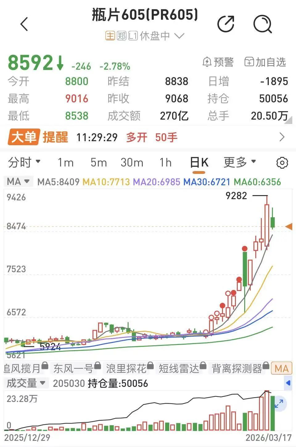 贵府泄露,三房巷主营居品以瓶级聚酯切片(瓶片)、PTA的坐蓐与销售为中枢,以PBT工程塑料、热电的坐蓐与销售等业务为补充。期货盘面上,郑商所瓶片期货主力合约近期握续上攻,3月16日盘中最高涉及9282元/吨,3月以来累计涨幅约40%。