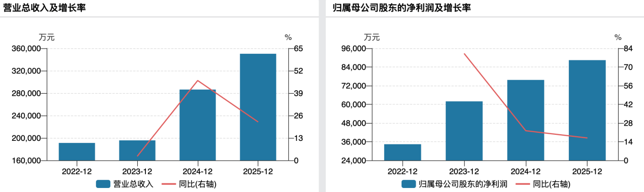财务数据涌现,2022—2025年,公司营业收入从19.11亿元增至35.03亿元,连破两个十亿级整数关隘;归母净利润从3.44亿元攀升至8.84亿元,四年间盈利翻了2.57倍,年均复合增长率超26%。