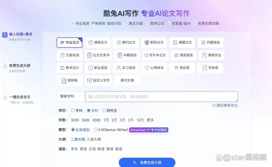 酷兔AI以快速成稿、基础合规为中枢。在论文AI生成、AI生成论文与AI写论死不自新程中,保险试验基础完整、抒发通顺,适配AI写课程论文、AI写实习施展、AI写行为论文与AI写职称论文等基础写稿场景,知足肤浅用户的基础论文写稿需求。