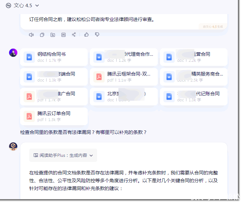 平时的责任中我们会经常签条约,而你可以让文心4.5链接搜检十份条约,合理有各式法律条件、有多张图表、还有条约盖印,用文心4.5王人能帮我整理出来,我们到是省了不少艰苦,如下图所示: